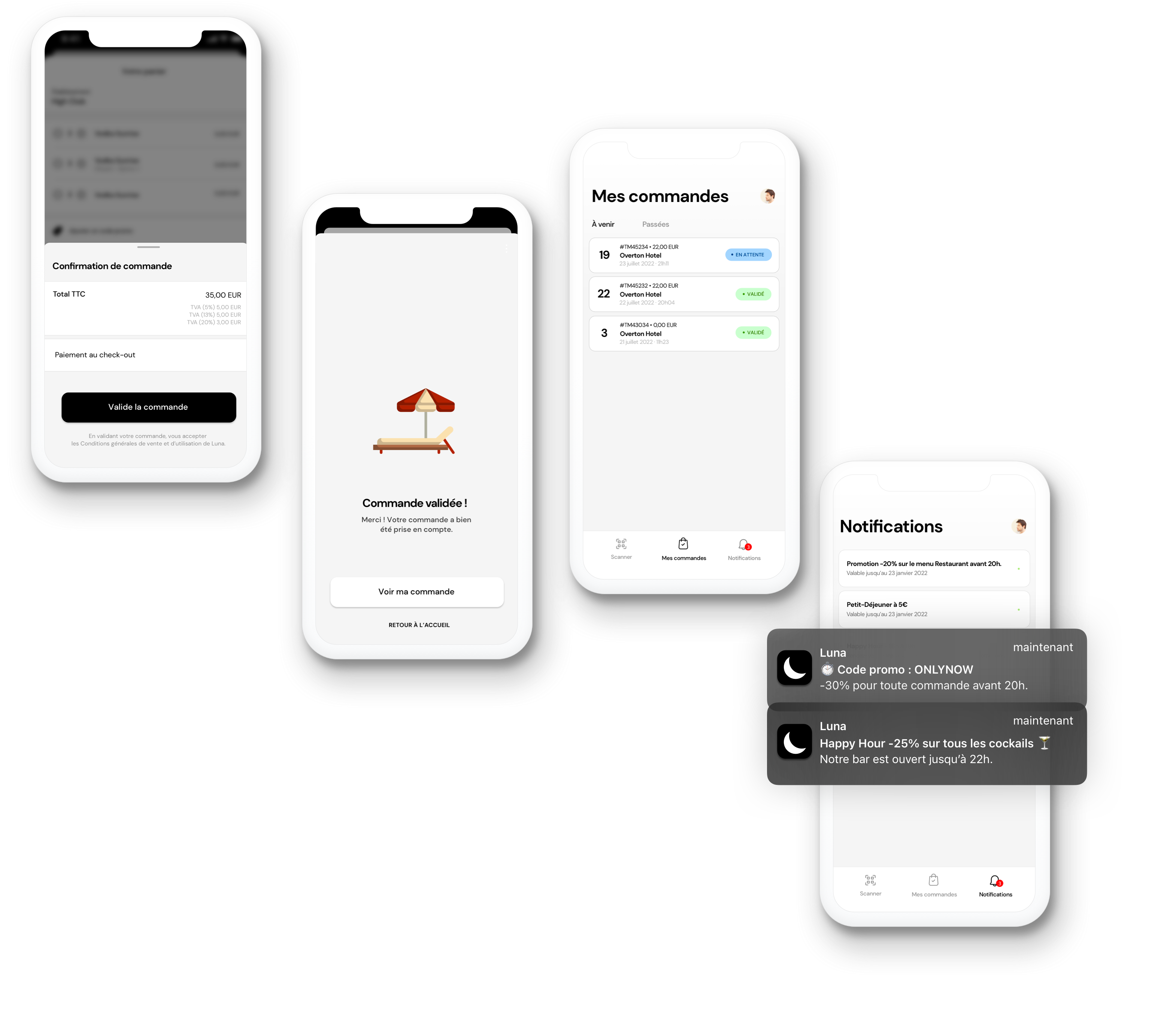 Ouvrez l’application Luna, scannez le QR Code, vous découvrez le menu de votre hôtel.